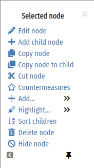 The thumbtack icon in the bottom right-hand corner of the node menu is used to select and deselect nodes. Selected nodes will show a solid icon, and will have a thick coloured border.