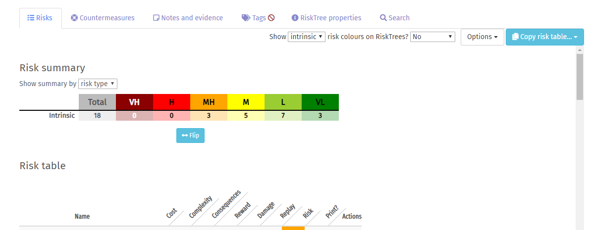 The risk table in the tabbed lower part of the screen will be populated with both a risk summary, and a detailed list of the risks.