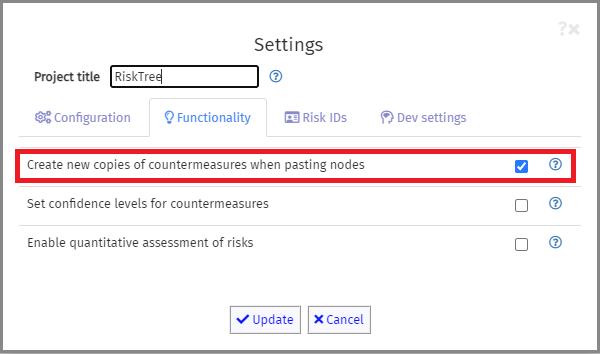 | …children | Pastes the child nodes of the copied node immediately below the selected node. If the top node of the copied section has countermeasures, you will be asked if you want to paste these onto the node onto which you are pasting. If you do not, these countermeasures will be lost | The copied node must have child nodes |
